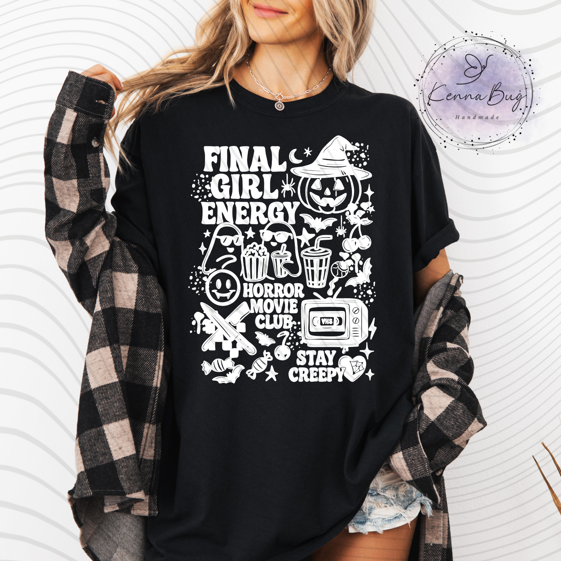 Final Girl Energy, Horror Movie Club, Stay Creepy, Halloween, White, DTF Transfer, Ready to Press, Shirt Transfer, Heat Transfer, Direct to film Transfer