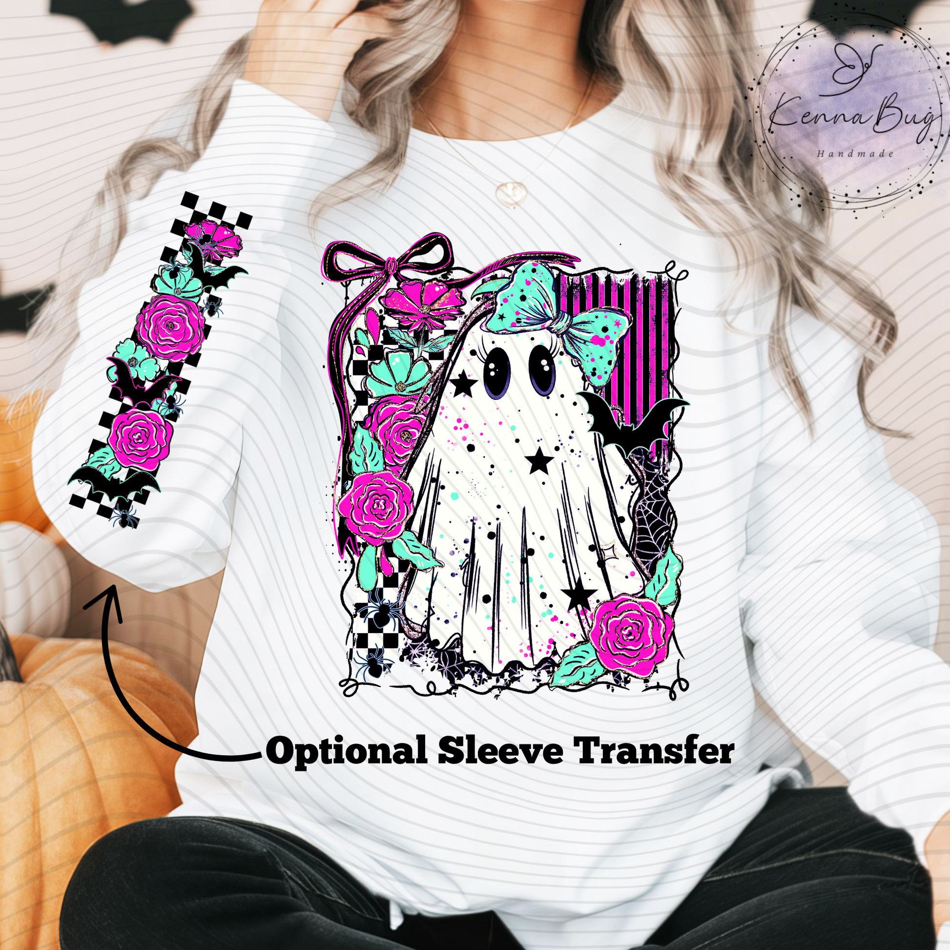 Pink Ghost, Floral, Halloween, DTF Transfer, Ready to Press, Shirt Transfer, Heat Transfer, Direct to film Transfer