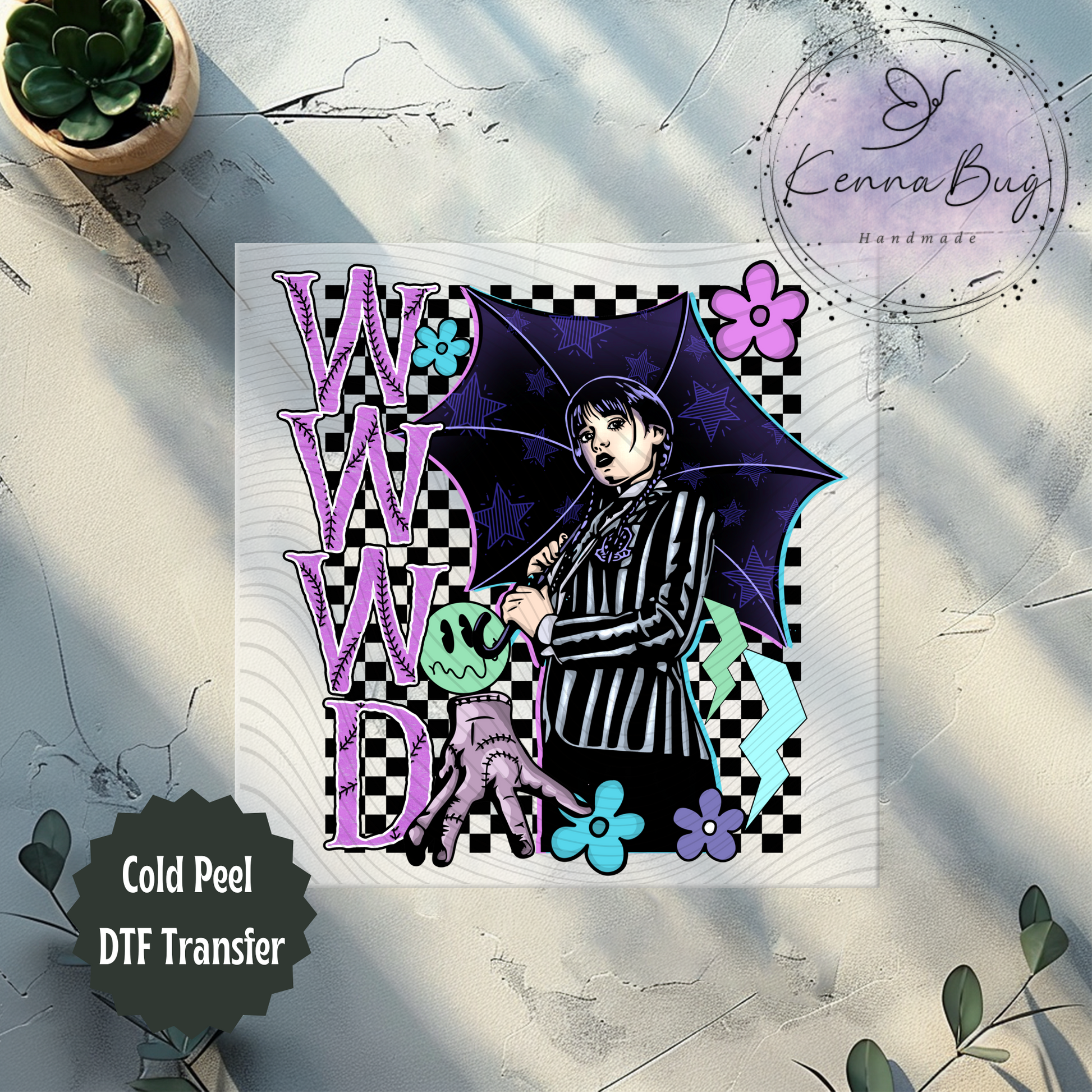 WWWD, What Would Wednesday Do, DTF Transfer, Ready to Press, Shirt Transfer, Heat Transfer, Direct to film Transfer